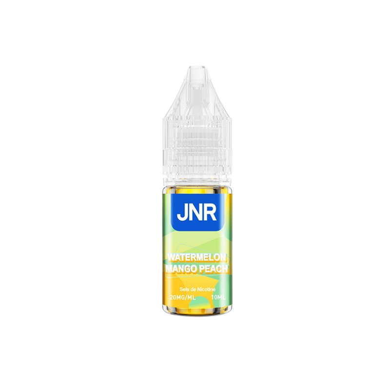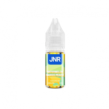 Watermelon Mango Peach de la marque JNR propose une combinaison de pastèquemangue et pêche, dans un e-liquide prêt à l’emploi, conditionné en flacon de 10 ml.