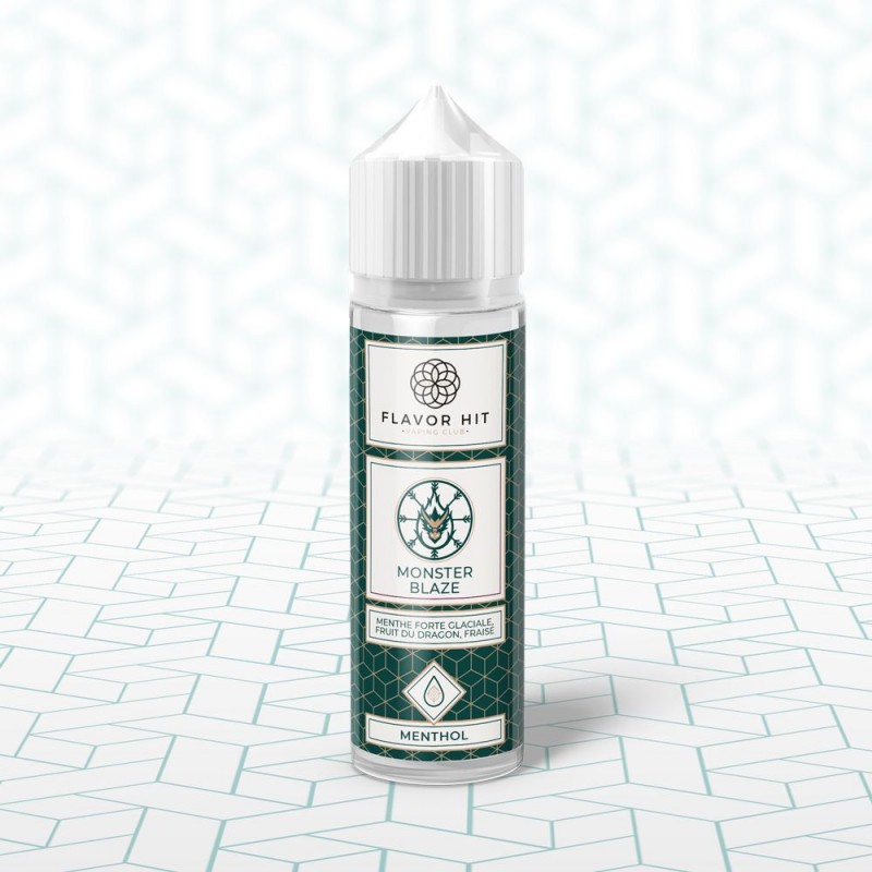 Monster Blaze de la gamme Menthols - Essentials par Flavor Hit associe une menthe forte glaciale à des notes de fruit du dragon et de fraise, dans un e-liquide 50 ml équilibré en PG/VG 50/50.