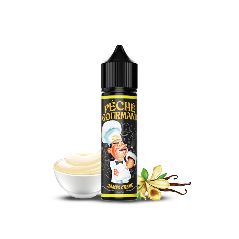 Découvrez l'élégance crémeuse de James Crème 50ml de Péché Gourmand par O'Jlab. Plongez dans une expérience de vape raffinée où la douceur de la vanille custard rencontre des touches poivrées subtiles pour un plaisir gustatif exquis à chaque bouffée.