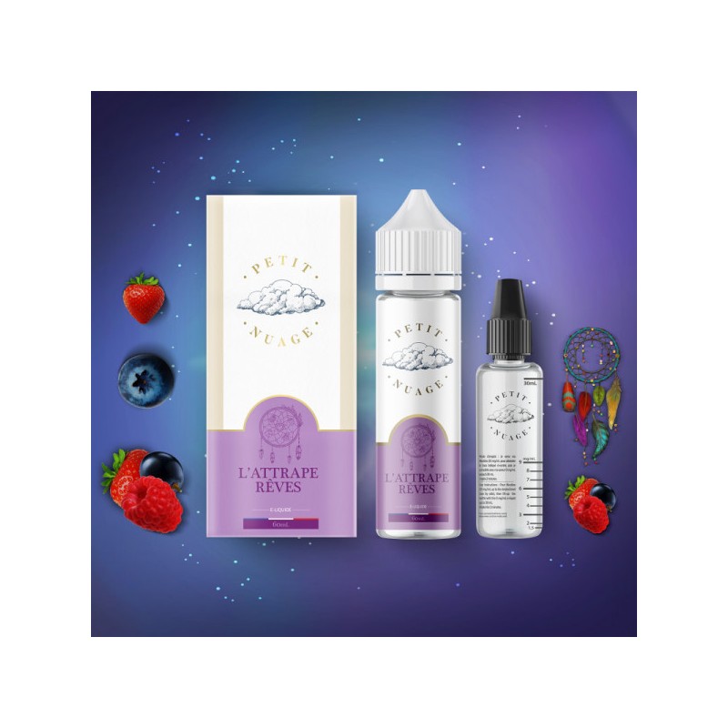 Découvrez la vivacité des fruits rouges avec l'e-liquide "L'Attrape Rêves" 50ml de Petit Nuage. Commandez dès maintenant pour une expérience de vapotage revitalisante et délicieusement fruitée.