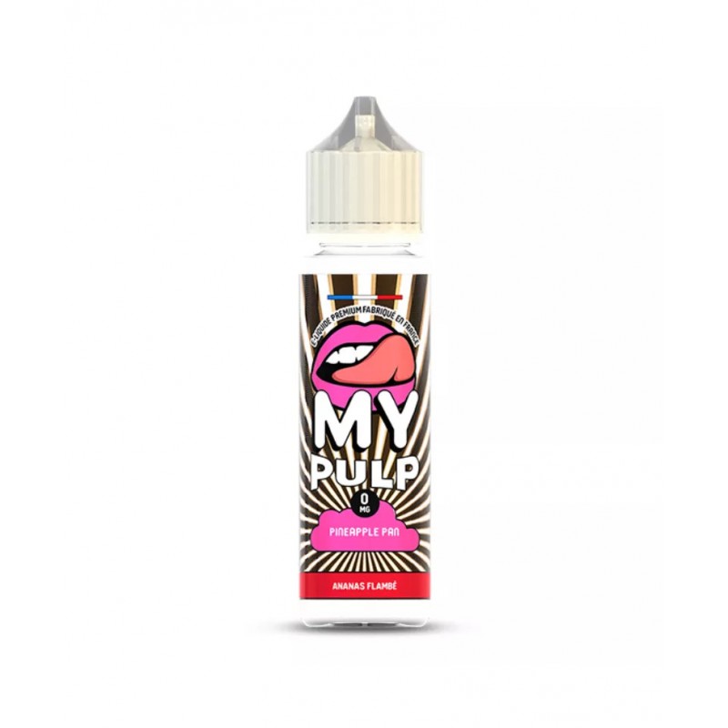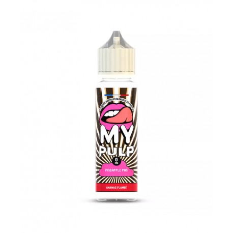 Le Pineapple Pan 50ml - My Pulp propose un mélange audacieux d'ananas flambé au whisky et de caramel, pour une expérience gourmande avec un ratio PG/VG 50/50.