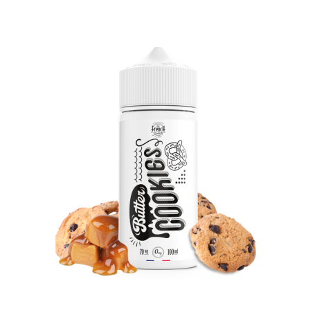 E liquide Butter Cookies 100ml - The French Bakery. Plongez dans une expérience gourmande irrésistible avec Butter Cookies de The French Bakery, un délicieux mélange de cookies savoureux et de caramel pour une vapeur sucrée et réconfortante !